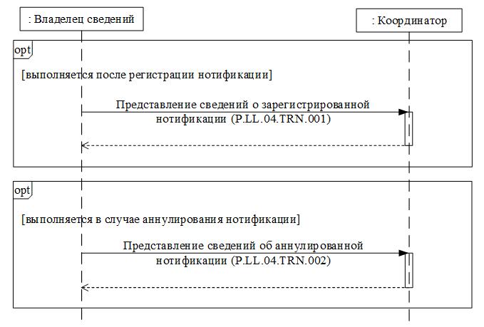 При включении сведений о зарегистрированной нотификации выполняется процедура "Представление сведений о зарегистрированной нотификации" (P.LL.04.PRC.001).