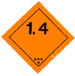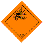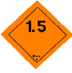 условный номер по "Перечню опасных грузов класса 1" в равностороннем треугольнике. Размер сторон треугольника в зависимости от габарита грузового места может быть 50, 80 или 150 мм;