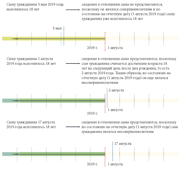 23. При представлении сведений в отношении несовершеннолетних детей следует учитывать, что лицо считается достигшим определенного возраста на следующий день после дня рождения.