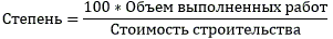 в соответствии с готовностью конструктивных элементов объекта по формуле: