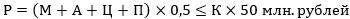 6. Размер субсидии (Р) рассчитывается исходя из компенсации не более 50 процентов фактически понесенных в рамках проекта затрат, связанных с созданием системы послепродажного обслуживания, но не более 50 млн. рублей на создание одного сервисного центра в среднем по проекту, и определяется по формуле: