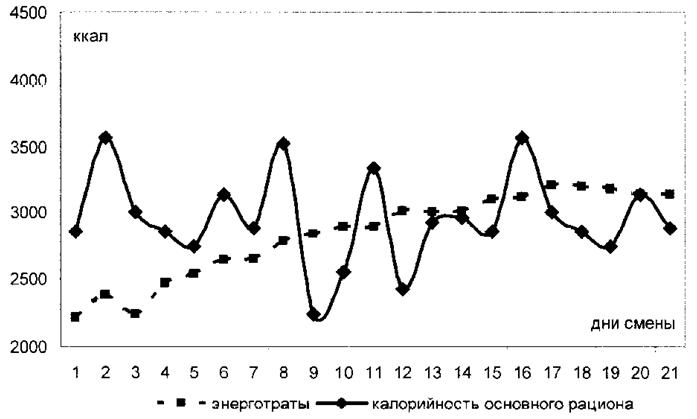Рисунок 1. Сравнительная характеристика соответствия калорийности питания и фактических энерготрат