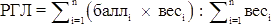 3.2.7. Для оценки активов банка рассчитывается обобщающий результат по группе показателей оценки активов (РГА), который представляет собой среднее взвешенное значение показателей, определенных в соответствии с подпунктами 3.2.1 - 3.2.6 настоящего пункта. Расчет обобщающего результата производится по формуле: (в ред. Указания ЦБ РФ от 26.12.2017 N 4667-У)