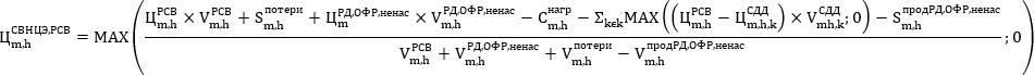 - стоимость электрической энергии в объеме потерь электрической энергии в электрических сетях, учтенных в равновесных ценах на электрическую энергию, в час (h) расчетного периода (m), рассчитанная коммерческим оператором оптового рынка в отношении группы точек поставки гарантирующего поставщика в соответствии с договором о присоединении к торговой системе оптового рынка, рублей;