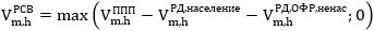 - объем покупки электрической энергии по регулируемым договорам, заключенным гарантирующим поставщиком в целях обеспечения потребления электрической энергии (мощности) населением и приравненными к нему категориями потребителей, определяемый коммерческим оператором оптового рынка в соответствии с договором о присоединении к торговой системе оптового рынка в час (h) расчетного периода (m), МВт ч;