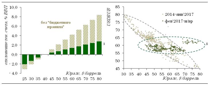 | Влияние изменения цен на нефть на текущий счет платежного баланса | Чувствительность валютного курса рубля к ценам на нефть |