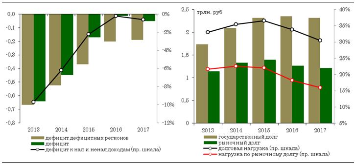 | Дефицит бюджетов субъектов | Долговая нагрузка субъектов |