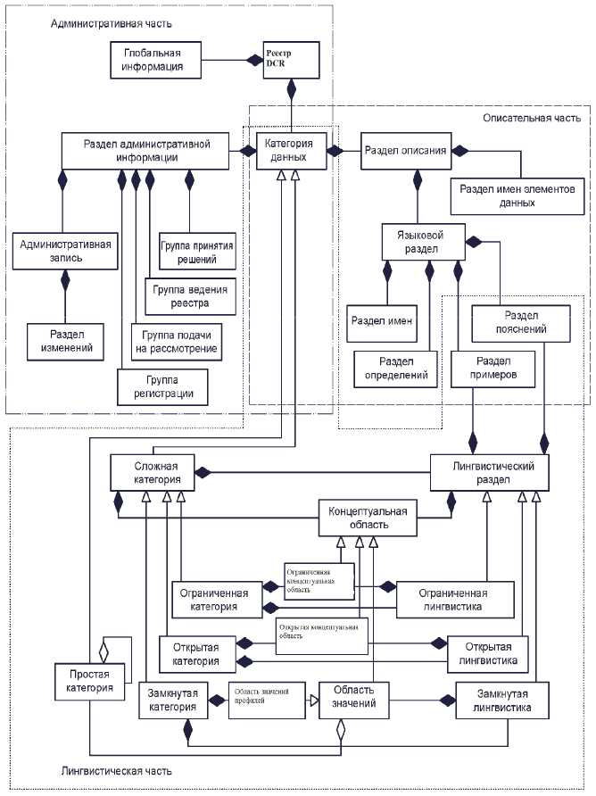 3.3.1 модель данных DCR (DCR data model): Логическое представление структуры данных и зависимостей в реестре DCR.