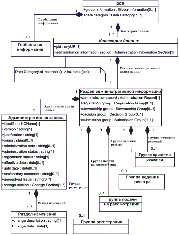 Примечание 1 - Модель данных DCR представляется в виде диаграммы класса UML.