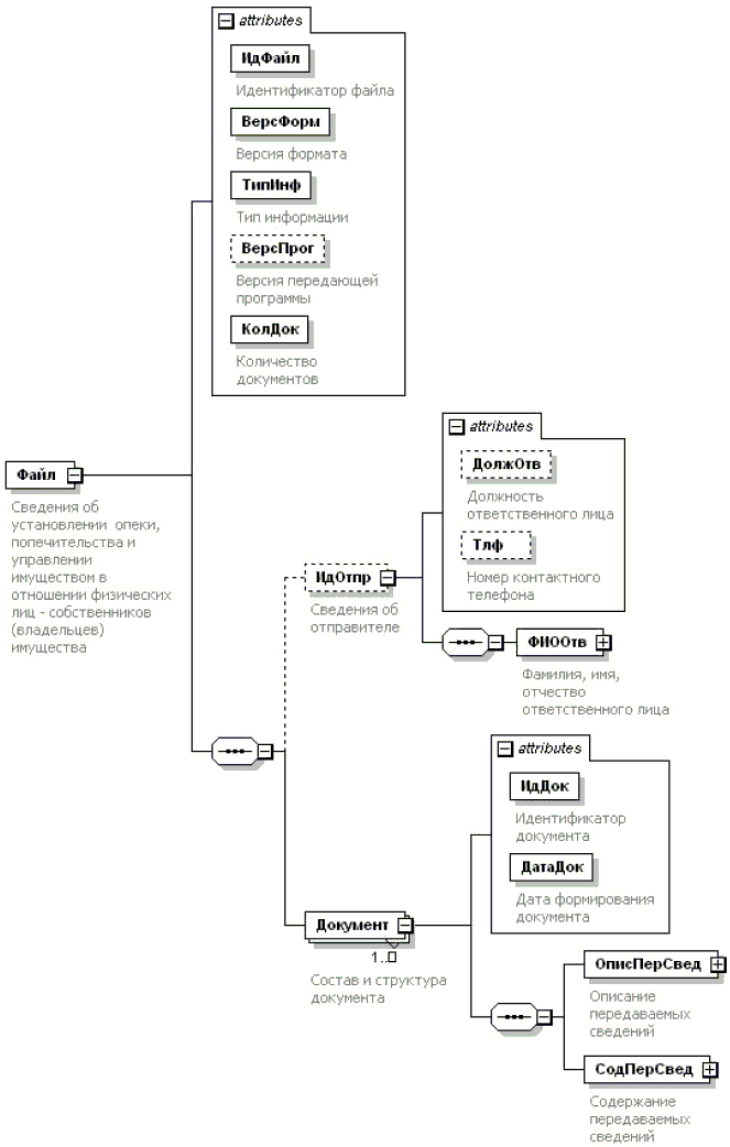 | Сведения об имуществе и доверительном управлении имуществом подопечного | СвУпрИмущ | С | | ОМ | Состав элемента представлен в табл. 4.11 |