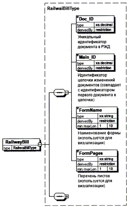 RailwayBill.xsd - XML схема сведений полного перевозочного документа, описание структуры и состава элементов которой представлены в разделе III настоящего формата;