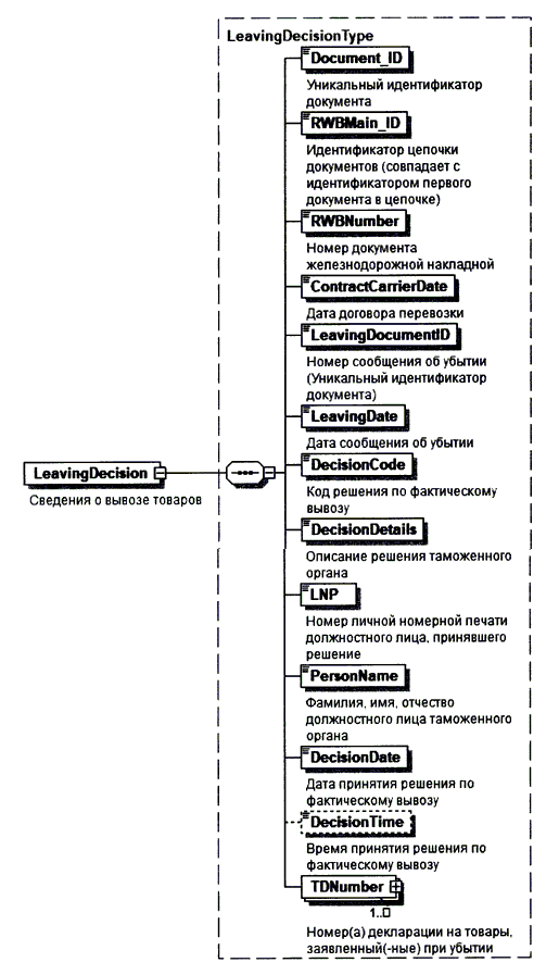 LeavingDecision.xsd - XML схема сведений о вывозе товаров, описание структуры и состава элементов которой представлены в разделе IV настоящего формата;