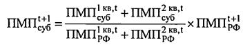 2. Величина прожиточного минимума пенсионера в субъекте Российской Федерации в целях установления социальной доплаты к пенсии на очередной финансовый год () рассчитывается по формуле: