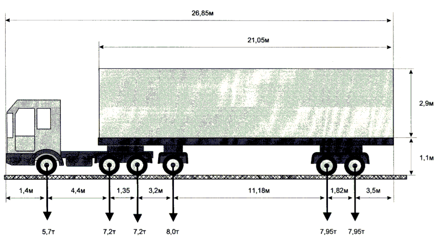 параметры транспортного средства (автопоезда) - масса транспортного средства (автопоезда) без груза/с грузом, масса тягача, прицепа (полуприцепа), расстояние между осями, нагрузки на оси;