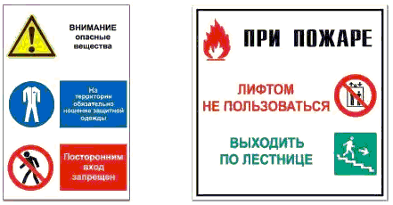 - знаков безопасности, сигнальной разметки, планов эвакуации и других визуальных средств обеспечения безопасности;