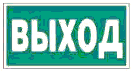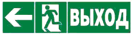 | E01-01 | Выход здесь (левосторонний) | Над дверями (или на дверях) эвакуационных выходов, открывающихся с левой стороны. На стенах помещений вместе с направляющей стрелкой для указания направления движения к эвакуационному выходу | |