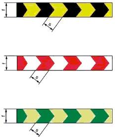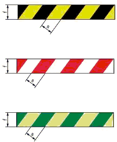 3.7 сигнальная разметка: Цветографическое изображение с использованием сигнальных и контрастных цветов, нанесенное на поверхности, конструкции, стены, перила, оборудование, машины, механизмы (или их элементы), ленты, цепи, столбики, стойки, заградительные барьеры, щиты и т.п. в целях обозначения опасности, а также для указания и информации.