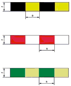 Настоящий стандарт устанавливает следующие сигнальные цвета: красный, желтый, зеленый, синий. Для усиления зрительного восприятия цветографических изображений знаков безопасности и сигнальной разметки сигнальные цвета следует применять в сочетании с контрастными цветами - белым или черным. Контрастные цвета необходимо использовать для выполнения графических символов и поясняющих надписей.