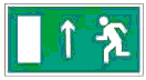 | E11 | Направление к эвакуационному выходу прямо | Над проходами, проемами, в помещениях большой площади. Размещается на верхнем уровне или подвешивается к потолку | |