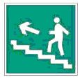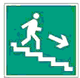 | E14 | Направление к эвакуационному выходу по лестнице вниз | На лестничных площадках и стенах, прилегающих к лестничному маршу | |