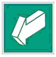 | E08 | Направление к эвакуационному выходу налево вниз | На стенах помещений для указания направления движения к эвакуационному выходу по наклонной плоскости | |