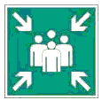 | E21 | Пункт (место) сбора | На дверях, стенах помещений и в других местах для обозначения заранее предусмотренных пунктов (мест) сбора людей в случае возникновения пожара, аварии или другой чрезвычайной ситуации | |