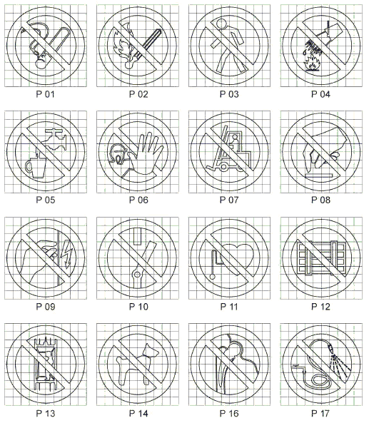 - запрещающие знаки - P01 "Запрещается курить", P02 "Запрещается пользоваться открытым огнем и курить", P04 "Запрещается тушить водой", P12 "Запрещается загромождать проходы и (или) складировать" (приложение Г); (в ред. Изменения N 1, утв. Приказом Росстандарта от 29.01.2019 N 11-ст)