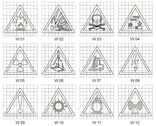 Рисунок П.2, лист 1 - Предупреждающие знаки