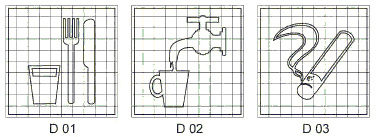 | D01 | Пункт (место) приема пищи | На дверях комнат приема пищи, буфетах, столовых, бытовых помещениях и в других местах, где разрешается прием пищи | |