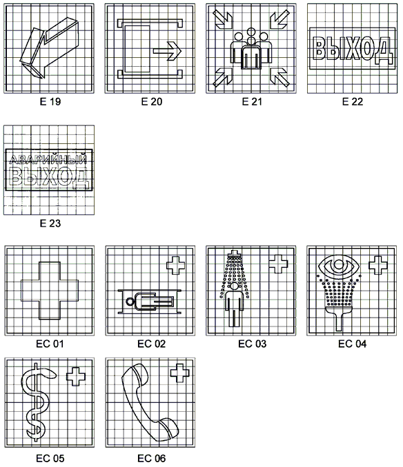 Рисунок П.5, лист 1 - Эвакуационные знаки и знаки медицинского и санитарного назначения