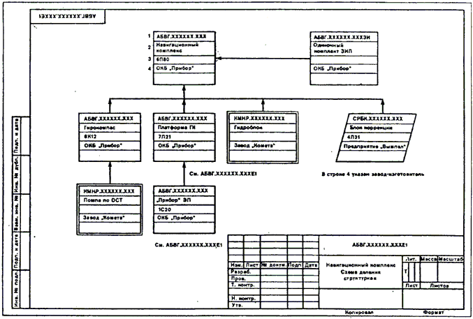 2.5. Если составная часть изделия оформлена отдельным документом, то при выполнении схемы деления в бумажной форме около соответствующего графического обозначения должна быть запись типа: см. АБВГ.ХХХХХХ.ХХХЕ1 (см. пример на черт. 2).