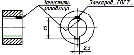 5.8. При ремонте изделия наплавкой, заливкой (при помощи сварки, пайки и т.п.) на ремонтном чертеже указывают наименование, марку, размеры материала, используемого при ремонте, а также обозначение стандарта на материал (рисунок 4).