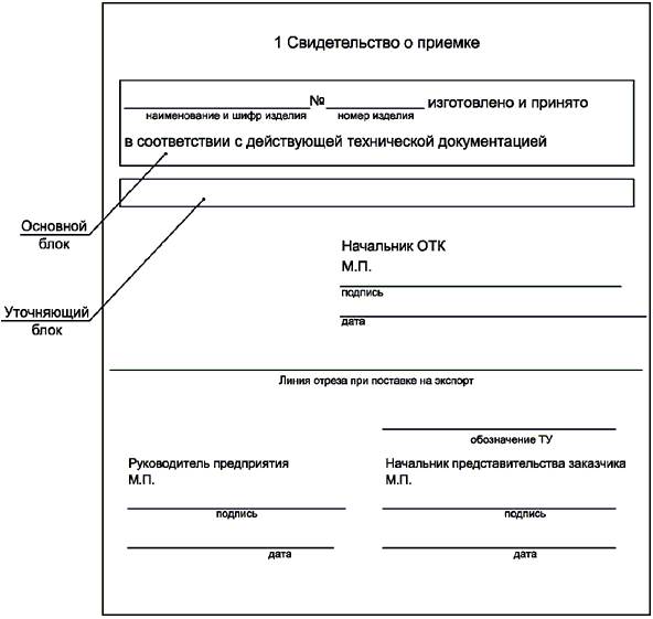 Рисунок Г.2 - Примеры выполнения раздела "Свидетельство о приемке", лист 1