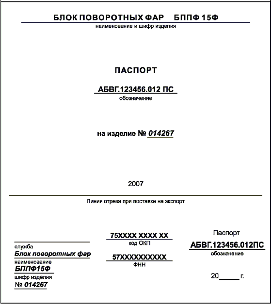 4.2 Удостоверяющий документ составляют на изделия, имеющие серийные или индивидуальные заводские номера. В зависимости от условий поставки изделия и объема приводимых в удостоверяющем документе сведений его выполняют в виде паспорта, этикетки или талона летной годности.