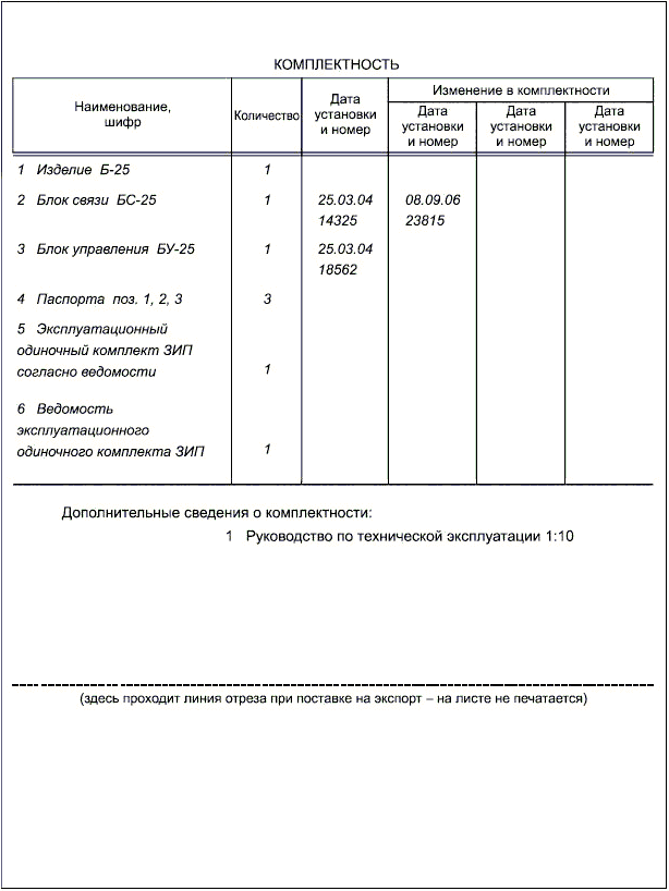 В.1 Пример заполнения перечня паспортов