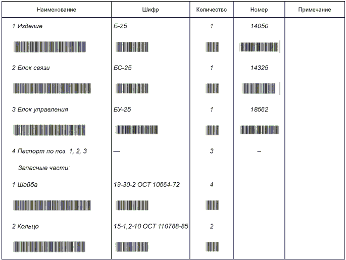 Рисунок Г.4 - Примеры выполнения раздела "Комплектность", лист 1