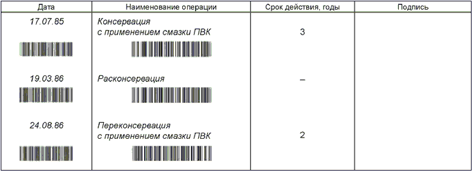 Рисунок Г.6 - Примеры выполнения раздела "Консервация и расконсервация"