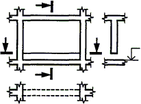 Примечания 1. Горизонтальную плоскость сечения колонн, опор и пилонов располагают на высоте 1 м над полом. Если база колонны выполнена по специальной конструкции, то горизонтальную плоскость сечения располагают в нижней части колонны над базой. Особенности конструкции капители колонны (например, вуты) изображают тонкой штриховой линией. 2. В случае переменного сечения колонн горизонтальную плоскость сечения выполняют в нижней части опоры. |