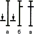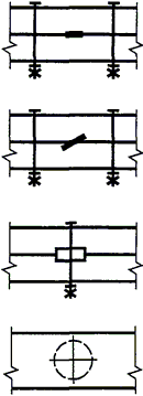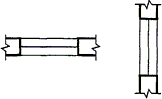 | 1.3. Прямые стержни, расположенные друг над другом на плане или виде, с маркировкой соответствующих концов стержней, показанных тонкой линией |  |