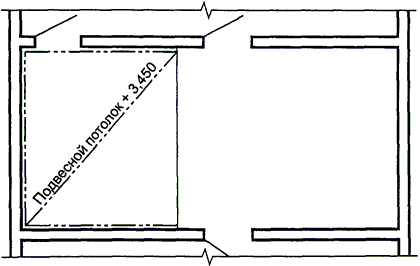 4.12.2. Подвесные потолки на планах изображают в соответствии с рисунком 2. Уровень подвесного потолка указывают его отметкой или высотой комнаты.