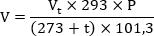 где - объем воздуха при температуре t в месте отбора пробы, дм3;