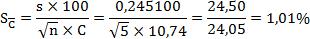 Находят относительное среднеквадратическое отклонение результата измерения