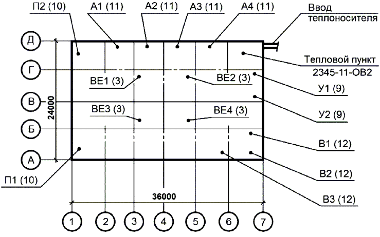 Рисунок Б.1 - Пример выполнения плана систем отопления и вентиляции