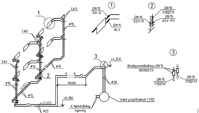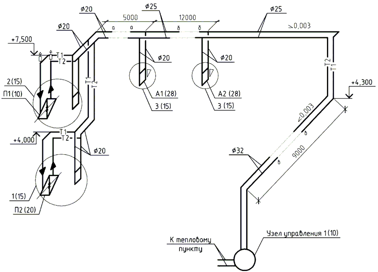 Рисунок В.1 - Пример выполнения схемы системы отопления