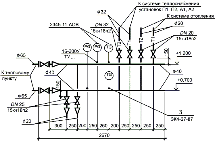 Рисунок В.4 - Пример выполнения узла схемы системы теплоснабжения установок