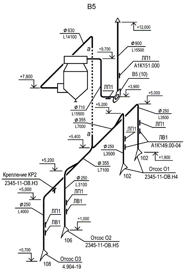 Рисунок Г.2 - Пример выполнения схемы вытяжной системы вентиляции