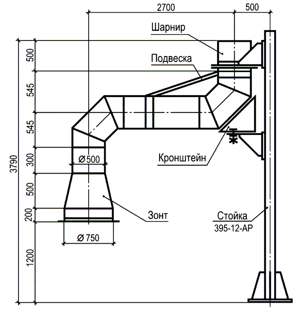 Пример - Регистр из гладких труб ГТ1, Крепление КР2, Отсос О1.