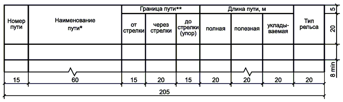 Рисунок Е.1. Пример заполнения ведомости железнодорожных путей