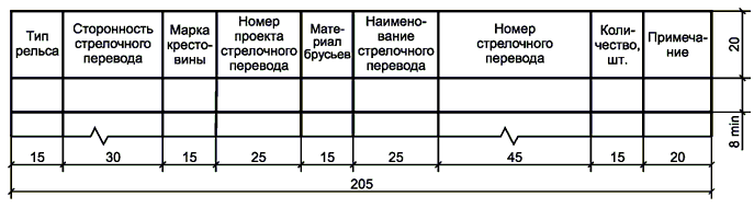 Рисунок Е.2. Пример заполнения ведомости стрелочных переводов новых железнодорожных путей