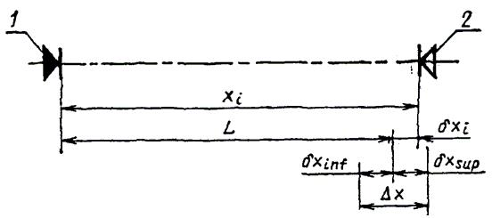 3.4. Допуски створности точек принимают по табл. 6 в зависимости от номинальной длины L разбиваемой оси.